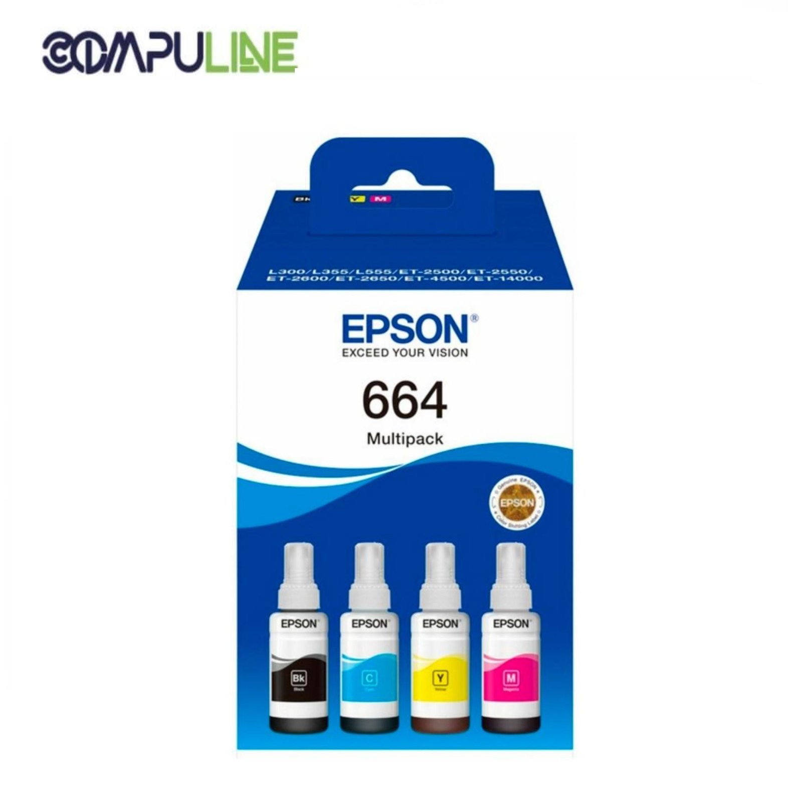 Pack de 4 Botellas de Tinta Epson EcoTank T664520, 70 ml, Negro-Cian-Magenta-Amarillo